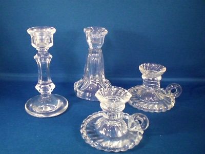 Title (ebay affiliate link): Old Miniature Depression Glass Candleholders Sticks Lot