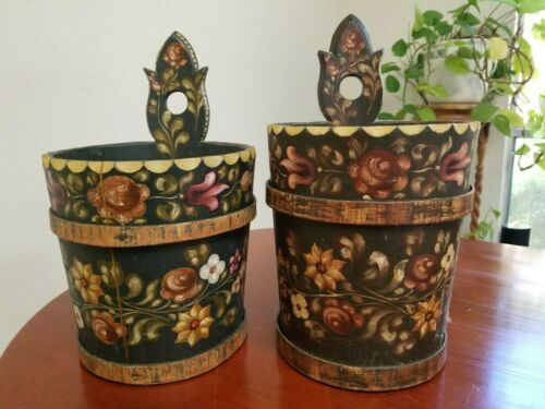 Title (ebay affiliate link): Antique Pair 19th C. Austrian Hand Made Painted Wood Flower-Pot Plant Holders