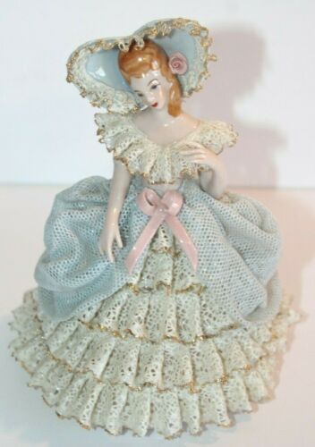 Title (ebay affiliate link): Vintage Heirlooms of Tomorrow Dresden Edith 456 Girl Figurine Made in USA