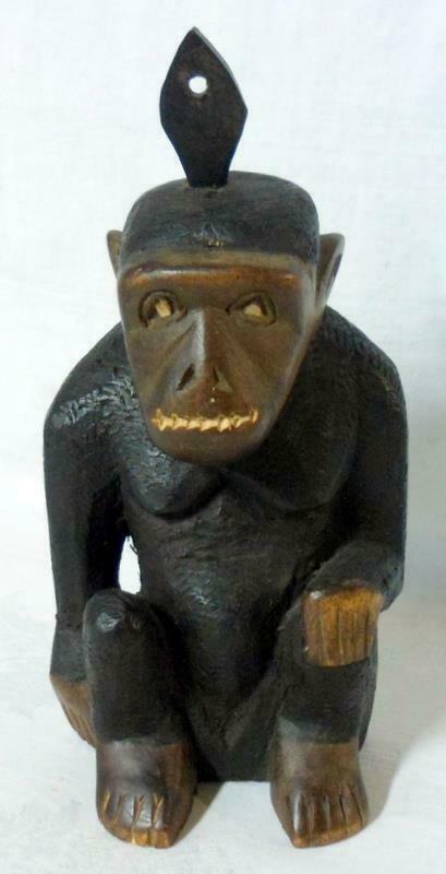 Kioko Signed Hand Carved Wood Baboon Gorilla Sculpture Figure