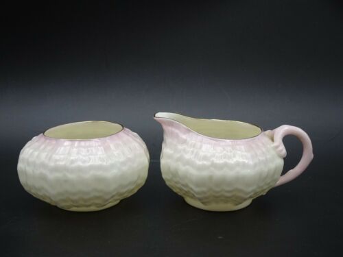 Title (ebay affiliate link): BELLEEK "TRIDACNA-PINK" (GOLD) RAISED SHELL MOTIF CREAMER & SUGAR 3RD GREEN MK
