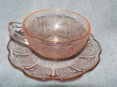 Title (ebay affiliate link): CHERRY BLOSSOM CHILD CUP AND SAUCER DEPRESSION GLASS
