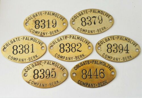 Title (ebay affiliate link): 4 Vtg Brass Tool Tags Colgate Palmolive Berkeley CA Machine Property Equipment