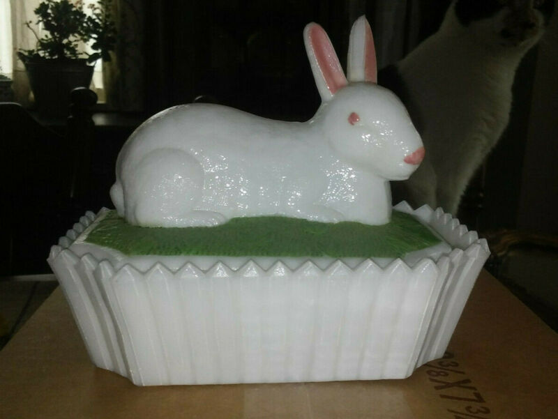 Title (ebay affiliate link): Vintage Westmoreland Milk Glass Covered Candy Dish w/ Bunny, Picket Fence
