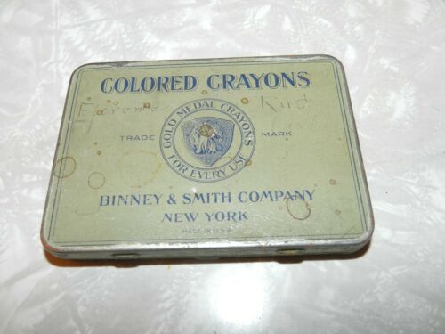 Title (ebay affiliate link): VTG METAL COLORED CRAYONS GOLD MEDAL BINNEY & SMITH CO NY HINGED TIN LITHO