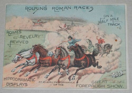 Title (ebay affiliate link): ***VINTAGE GREAT FOREPAUGH SHOW ROUSING ROMAN HIPPODROME RACES TRADE CARD***