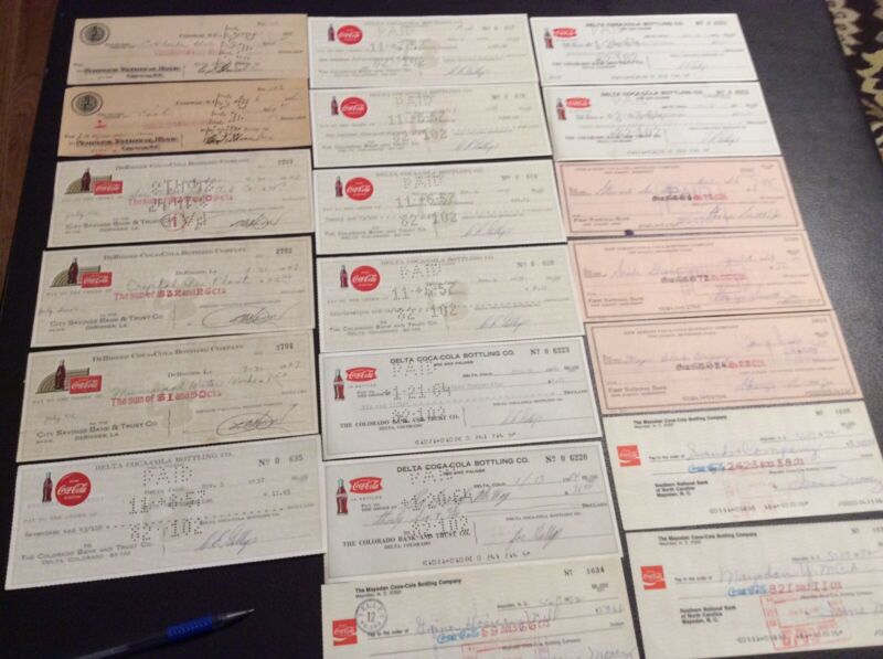 Vintage Lot Of 20 Coca Cola Bottling Co Checks 1926, 47, 57, 64, 66, 69, 72