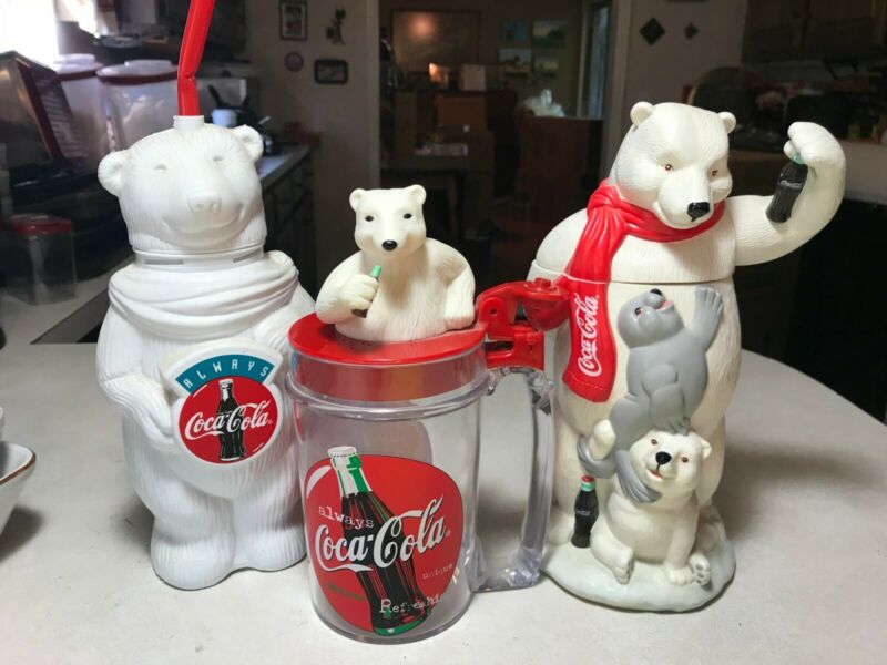 Title (ebay affiliate link): ALWAYS Coca Cola Polar Bear Plastic cold drink Bottle bundle