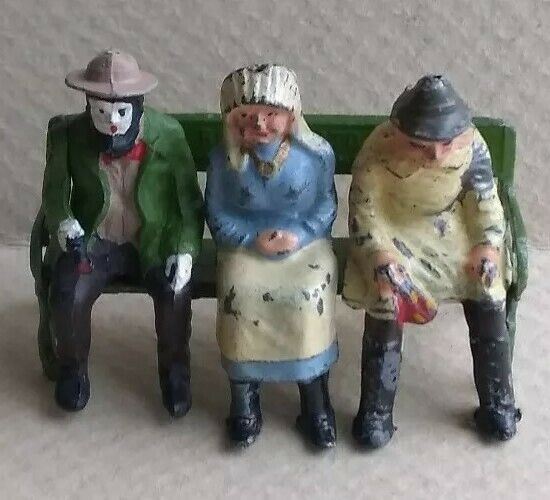 Title (ebay affiliate link): 3 people on a bench. Lead figures sitting. Britains. Made in England.
