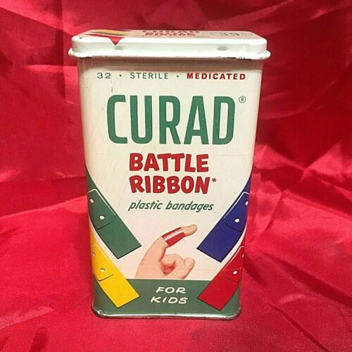 Title (ebay affiliate link): VTG, 1950s ,CURAD ,"''BATTLE RIBBON" PLASTIC BANDAGES FOR KIDS, EMPTY TIN !!!..S1