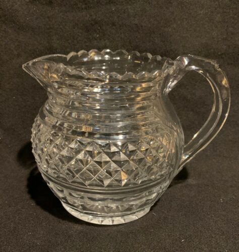 19th C Anglo Irish Cut Glass Cider Jug Heavy Decorative Cutting
