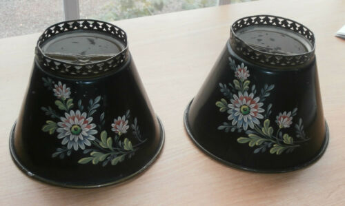 Lot of 2 Vintage Small Hand Painted Toleware Lamp Shades
