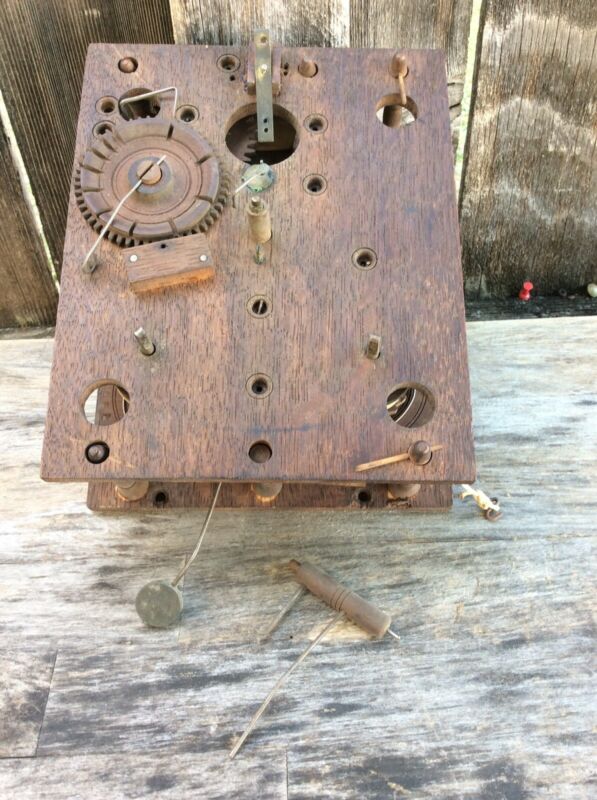 Title (ebay affiliate link): Antique American Wooden Works Shelf Clock Movement, Parts / Repairs #2