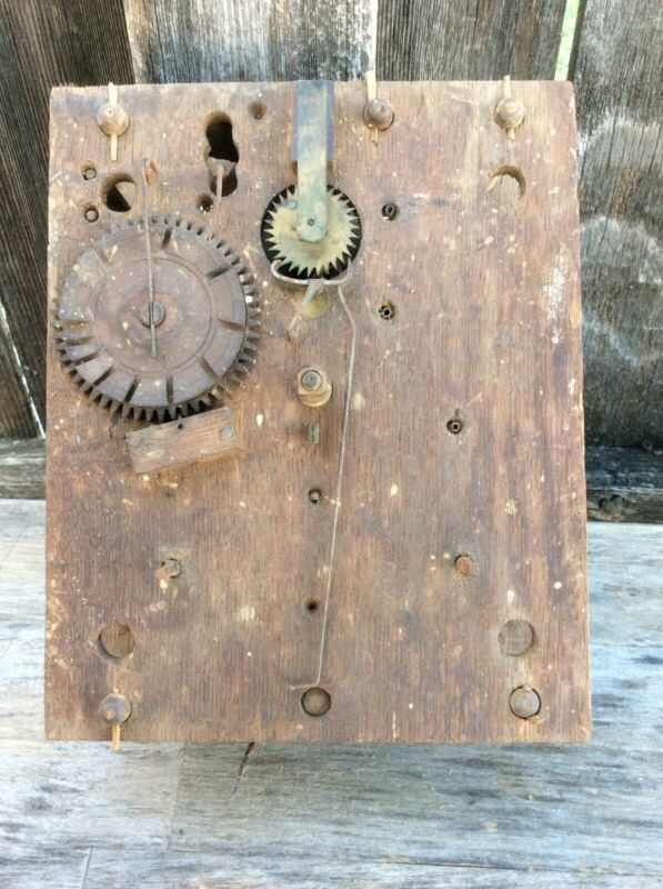 Title (ebay affiliate link): Antique American Wooden Works Shelf Clock Movement, Parts / Repairs # 5