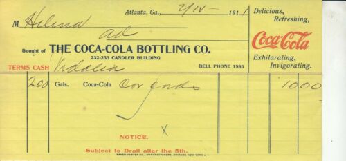 Title (ebay affiliate link): THE COCA-COLA BOTTLING CO. ATLANTA GA. INVOICE, Dated 2/11 1911 109 YEARS OLD