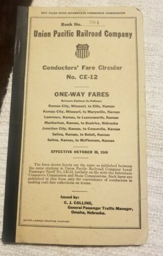 Title (ebay affiliate link): Union Pacific Railroad Memorabilia Conductors'' Fare Circular Kansas 1948