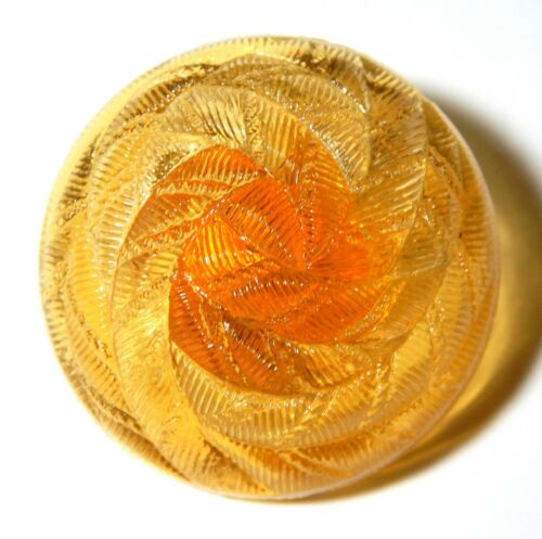 1940''S 7/8" GOLDEN AMBER DEPRESSION GLASS BUTTON w/FINE WOVEN FABRIC-LIKE DESIGN