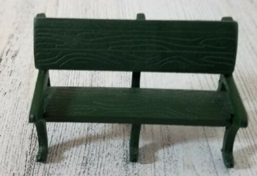 Title (ebay affiliate link): Miniature Dollhouse Furniture ~ 1" Tall Green Metal Park Bench