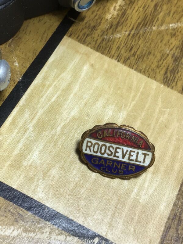 Roosevelt Garner Club California Enamel Brass Campaign Pin Button 1932 Vintage