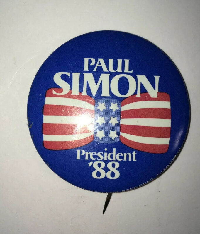 Title (ebay affiliate link): Vintage 1988 Democratic Pin Paul Simon For President