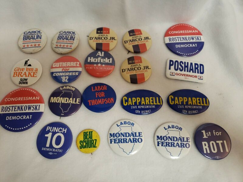 Title (ebay affiliate link): Rare Vintage Chicago land area Illinois State Campaign Buttons 20 Total Politics