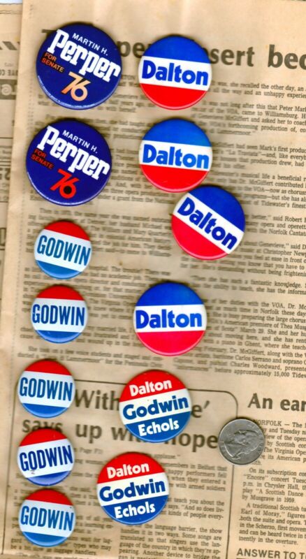 Title (ebay affiliate link): 1970''s Virginia Campaign Buttons. 13 pieces, Governor, Dalton, Godwin, Perper