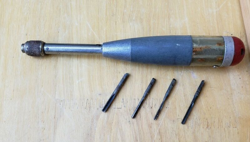 Vintage Craftsman Hand Push Drill with 4 Drill Bits Works