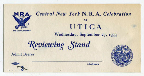 Title (ebay affiliate link): 1933 National Recovery Act NRA Parade Reviewing Stand Ticket Utica NY FDR Scarce