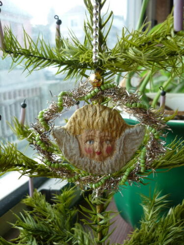 Title (ebay affiliate link): VTG.PAPIER ANGEL IN TINSEL ROUND CHRISTMAS TREE ORNAMENT