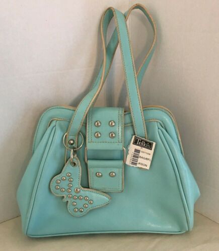 Vintage Look Green Handbag Faux Leather Shoulder Purse with Butterfly Key chain
