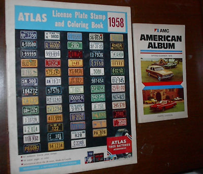 Title (ebay affiliate link): 1958 ATLAS LICENSE PLATE COLORING BOOK & 1974 AMC BOOK