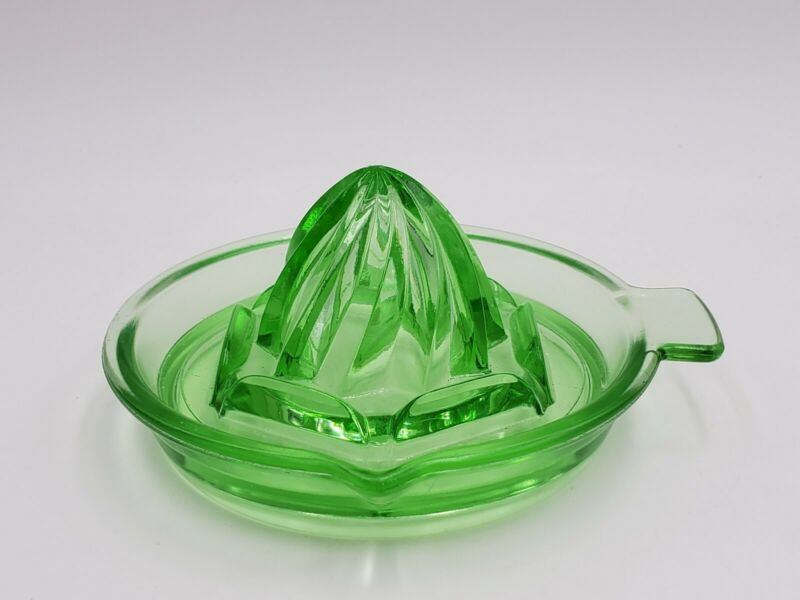 Green Vaseline Uranium Depression Glass Juicer Reamer Excellent Condition