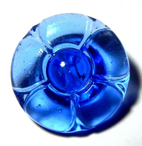 WONDERFUL 1930''S BLUE DEPRESSION GLASS BUTTON w/FLOWER MOLDED TOP