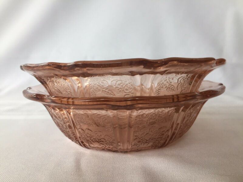 Title (ebay affiliate link): Set of 2 Cereal Soup Bowls 6" Jeannette Pink Cherry Blossom Depression Glass