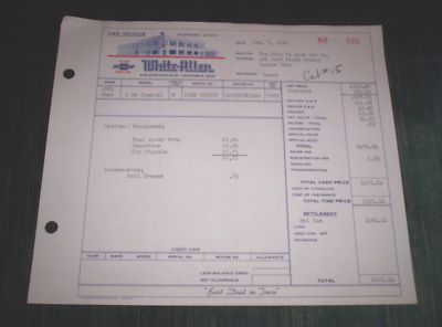 1954 Chevrolet Dealer Original Invoice Yellow Cab Taxi