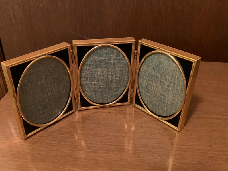 Title (ebay affiliate link): Vintage Tri Fold Hinged Picture Frame Gold Toned Black Border Reverse Painted