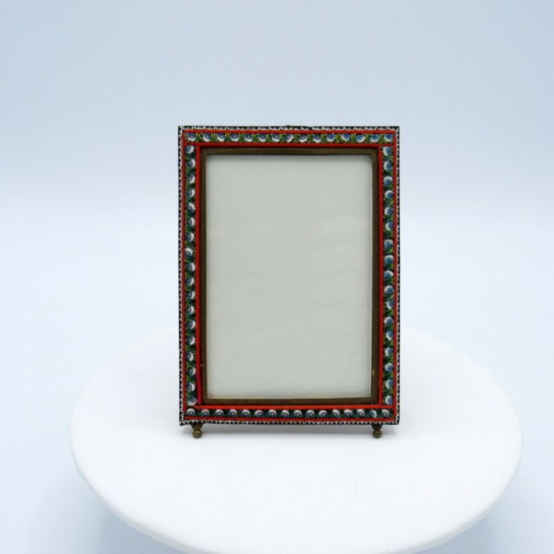 Title (ebay affiliate link): Beautiful Micro Mosaic Frame w/ Flowers in Red Border, Footed Made in Italy NR