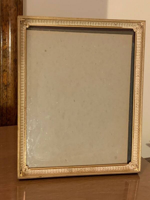 Vintage Picture Frame 8x10 White Washed Gold Tone Metal Easel Back