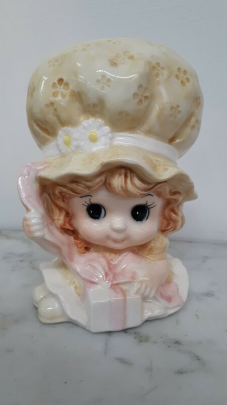 Title (ebay affiliate link): Relpo Head Vase Vintage 6896 Child In Yellow Bonnet Opening A Gift Box