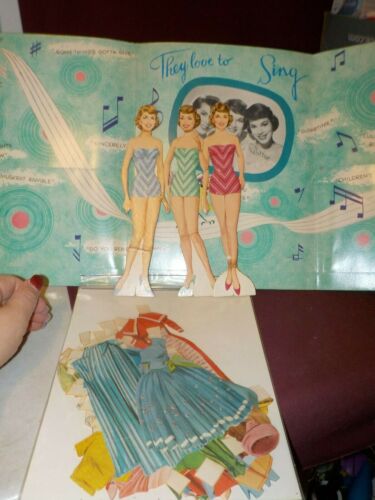 Title (ebay affiliate link): VINTAGE 1959 THE MCGUIRE SISTERS 3 CUT OUT DOLLS W/ DRESS THAT SPARKLE WHITMAN