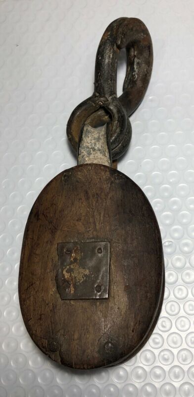 Title (ebay affiliate link): Antique Rustic Wood and Metal Pulley