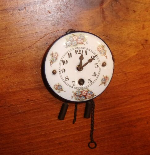 Title (ebay affiliate link): ANTIQUE Lux MINIATURE Clock GERMANY Wall Hanging Enamelware Dollhouse