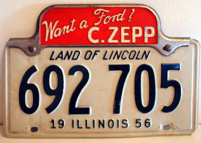 LICENSE PLATE ATTACHMENT 1950'S FORD ADVERTISING ILL.