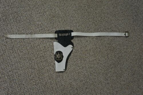 Title (ebay affiliate link): CHILD''S LEATHER SINGLE HOLSTER WHITE BLACK WITH METAL BADGE
