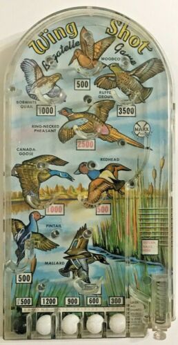 Title (ebay affiliate link): Vintage MARX Wing Shot Bird Hunting Bagatelle Toy Pinball Game