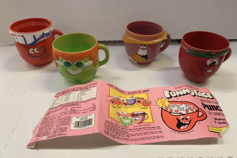 Title (ebay affiliate link): 4 PILLSBURY FUNNY FACE MUGS WATERMELON CHERRY FRECKLE FACE STRAWBERRY RASPBERRY