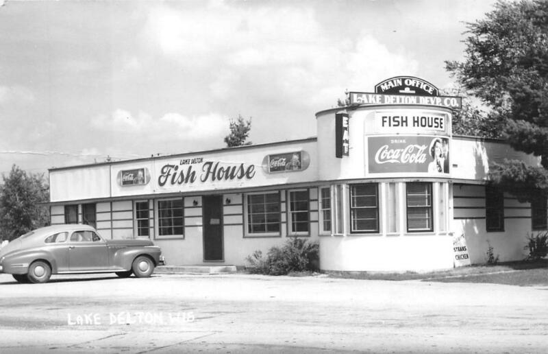 RPPC LAKE DELTON WISCONSIN FISH HOUSE COCA-COLA SIGN REAL PHOTO POSTCARD (1950s)