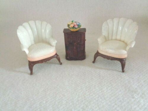 Title (ebay affiliate link): Renwal 2 Barrel Chairs Floor Radio Easter Eggs Vintage Dollhouse Mini Furniture