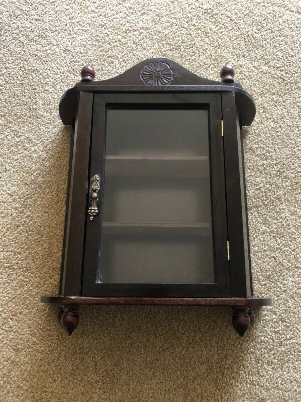 Title (ebay affiliate link): Wood and Glass Mirrored Curio Cabinet, 16" tall, 3 tiered Rich Mahogany Color