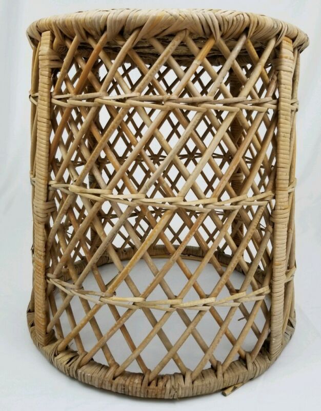 Vintage Rattan Bamboo Accent Table Plant Stand Bohemian Retro Mid-century